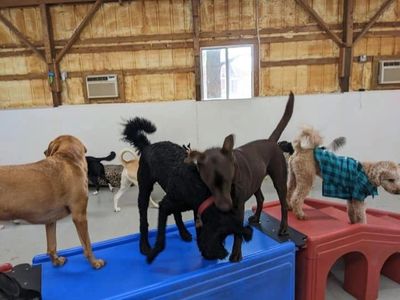 Our dog daycare facility has indoor and outdoor areas for your dogs to run, play, rest and repeat as they desire.